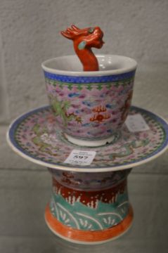 A pair of Chinese famille rose porcelain pedestal pastel burners with removal upper sections.