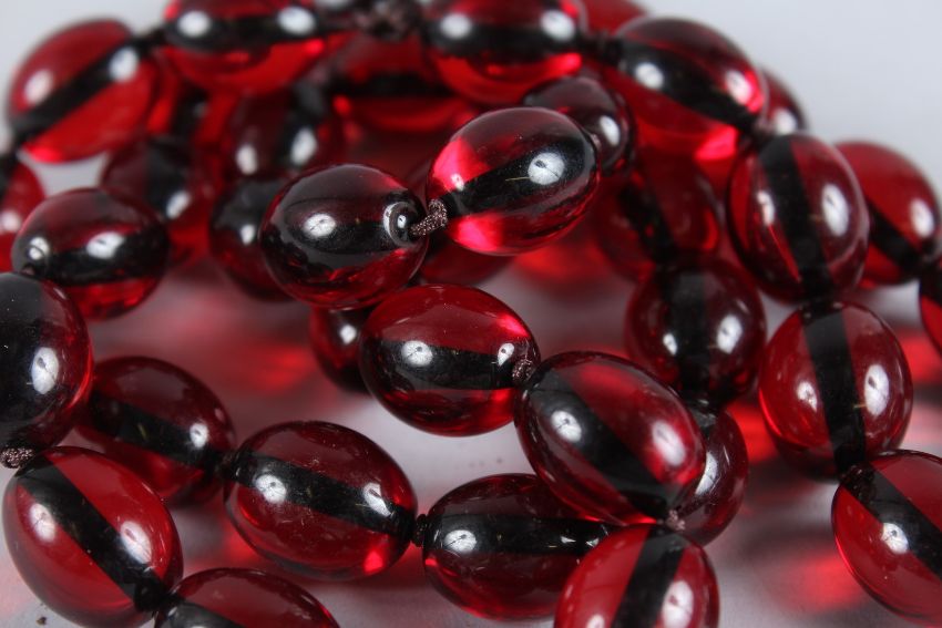 A FAUX CHERRY AMBER BEAD NECKLACE.
