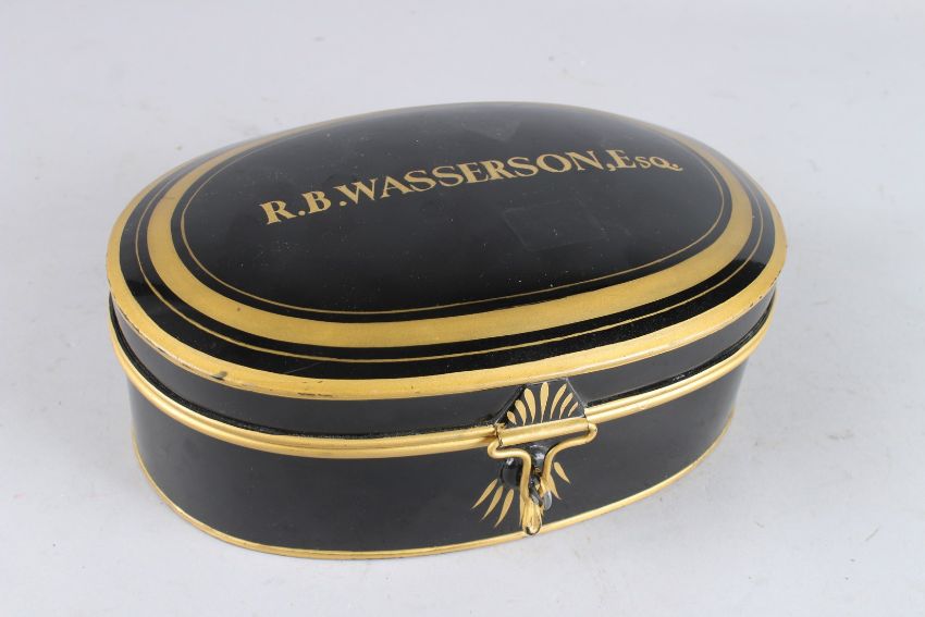 R. B. WASSERSON ESQ. A LAW WIG AND COLLAR by Ede & Ravenscroft, Chancery Lane, London, in a tin box.