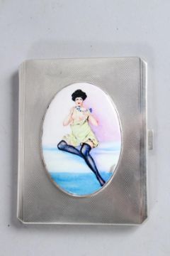4ins x 3.5ins. Birmingham 1936, with an oval enamel glamour model.