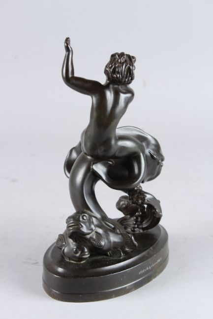 A SWEDISH BRONZE GROUP, boy riding a dolphin.