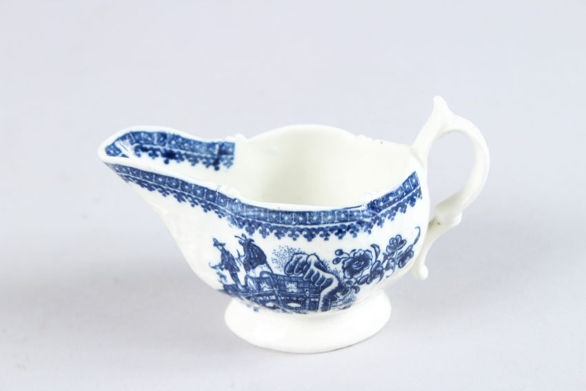 A SMALL CAUGHLEY BLUE AND WHITE SAUCEBOAT, CIRCA 1790 - 1792.