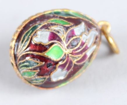 A RUSSIAN SILVER AND ENAMEL EGG PENDANT.