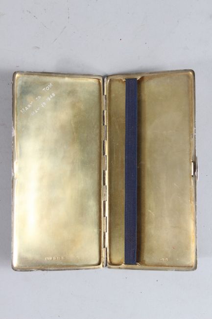 A LARGE GEORGE VI ENGINE TURNED CIGARETTE CASE.