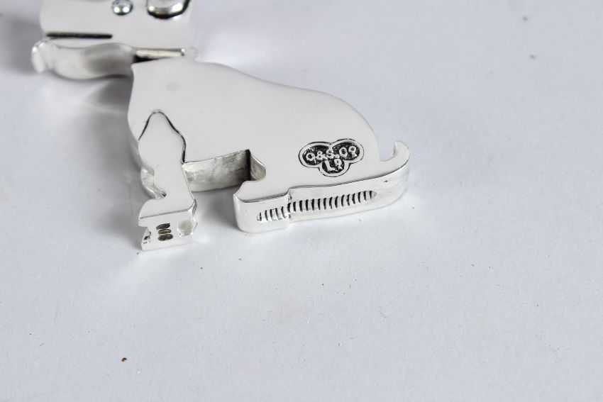 A SILVER PLATED DECO DOG VESTA.
