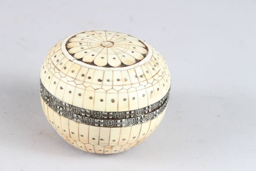 AN INDIAN BONE INLAID CIRCULAR BOX.