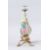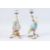 A PAIR OF COLOURFUL PORCELAIN PARROT CANDLESTICKS on gilt metal stands.