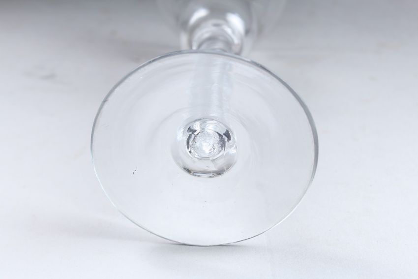 A JACOBITE WINE GLASS, the bowl engraved with roses.