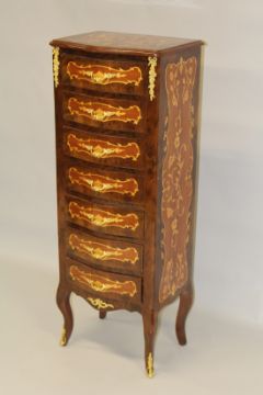 A LOUIS XVITH DESIGN SEVEN DRAWER MARQUETRY TALL SQUARE CHEST.