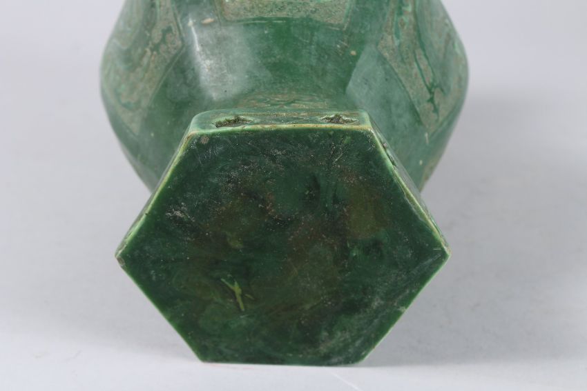 A GOOD LARGE CHINESE OCTAGONAL ARROW HANDLED VASE.