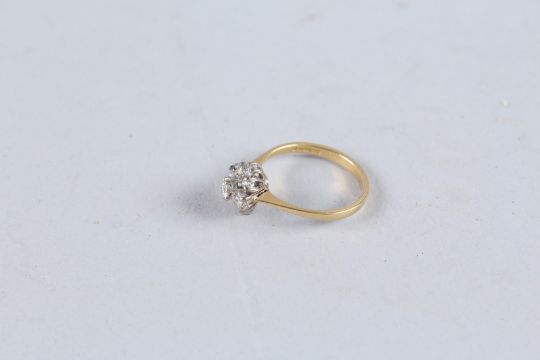 AN 18CT GOLD DIAMOND CLUSTER RING.
