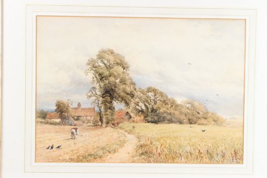 Landscape with farm, labourer and crows,