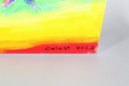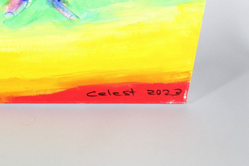 CELEST (CONTEMPORARY)'Refugee Series /6',oil on canvas,signed and dated 2023,signed certification stamp verso,unframed, 76cm x 102cm