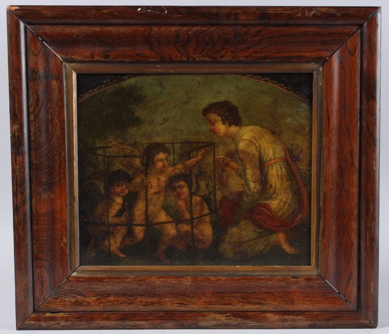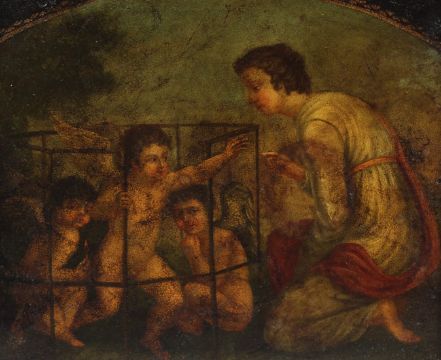 Classical scene of three cupids and a kneeling figure,