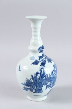 A CHINESE BLUE AND WHITE BOTTLE VASE decorated with figures in a landscape.