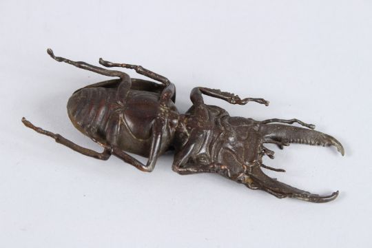 A JAPANESE OKIMONO BRONZE STAG BEETLE with articulated wing.