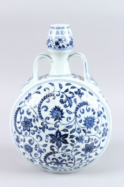 A CHINESE BLUE AND WHITE "LOTUS" MOONFLASK.