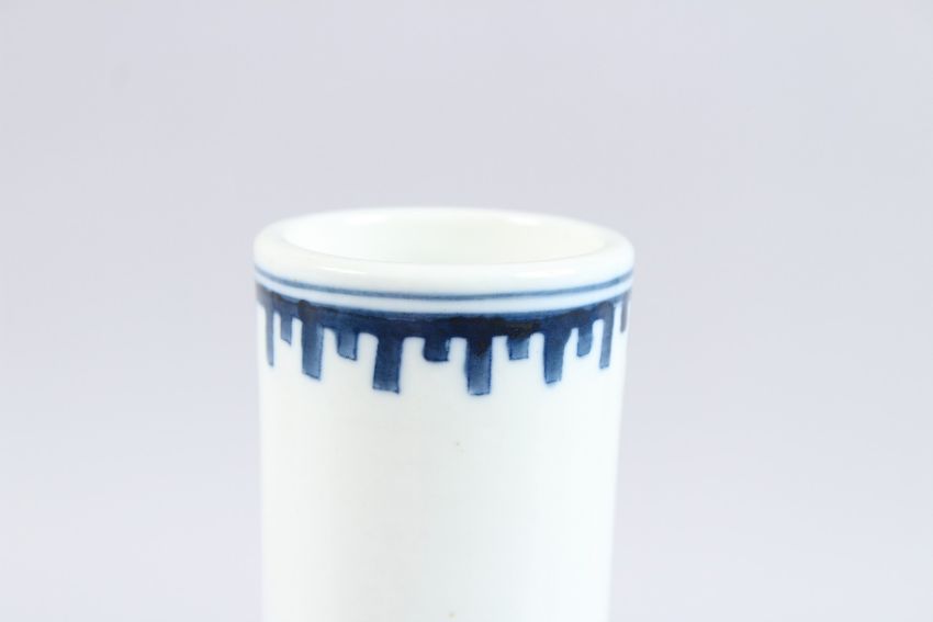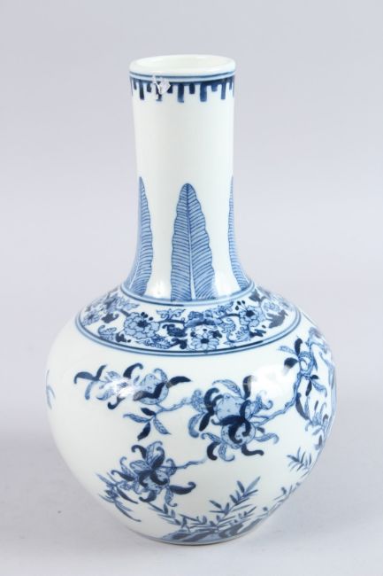 A CHINESE BLUE AND WHITE VASE depicting peach pattern, mark to the base.