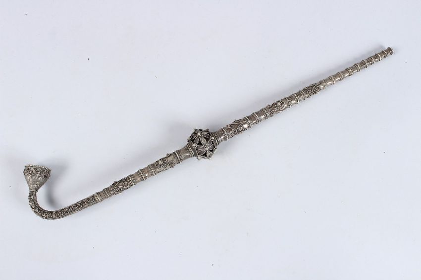 AN OTTOMAN TURKISH SILVER PIPE.