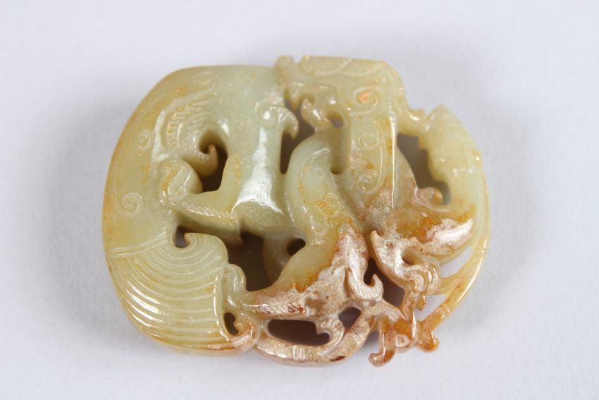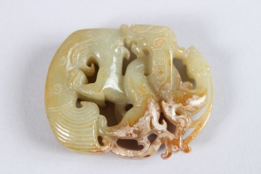 A CHINESE ANTIQUE CELADON JADE PENDANT.