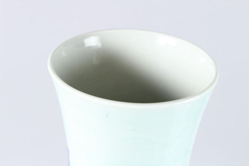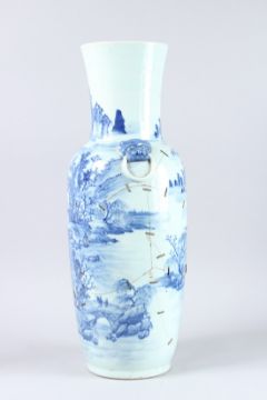 A LARGE 19TH CENTURY CHINESE BLUE AND WHITE VASE decorated with buildings, figures etc.