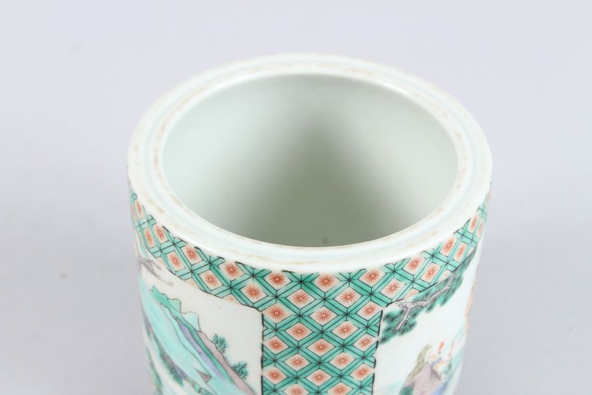 A CHINESE FAMILLE VERTE BRUSHPOT.