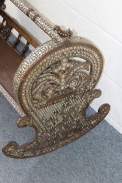 A RARE 19TH CENTURY ISLAMIC CIRCULAR ROCKING CRADLE inlaid with mother-of-pearl.