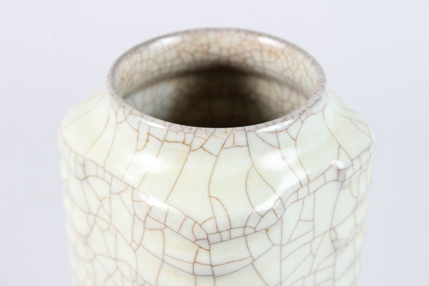 A CHINESE GE WARE CRACKLE GLAZE GONG SHAPE VASE.