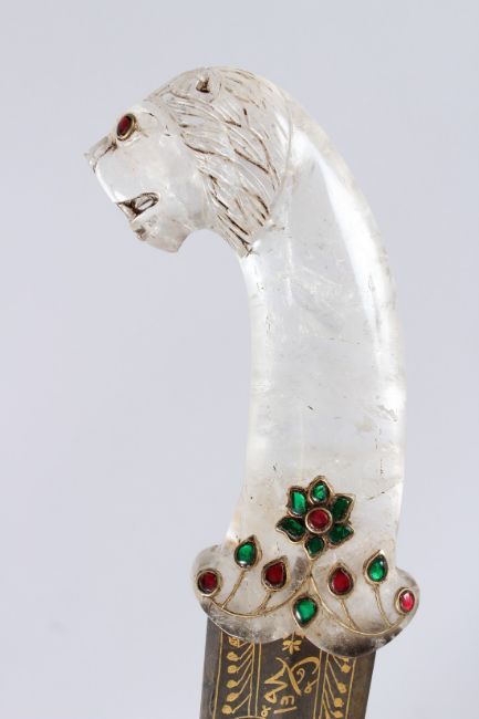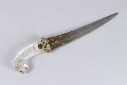 A GOOD KHANJAR DAGGER with rock crystal handle and gilded blade.