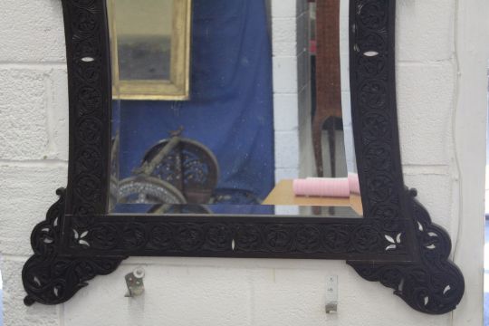 A LARGE 19TH CENTURY ISLAMIC SHAPED MIRROR with pierced decoration and mother-of-pearl.