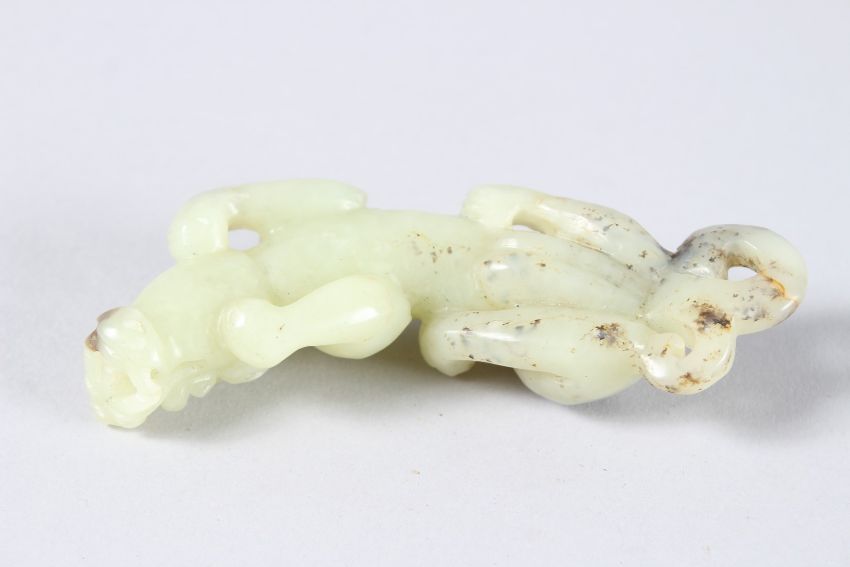 A CHINESE CARVED JADE BEAST.