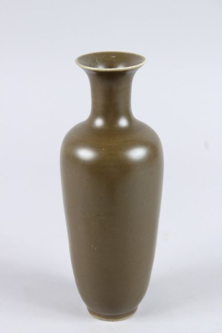 A SMALL CHINESE PLAIN BROWN VASE.