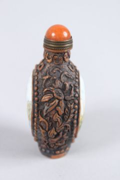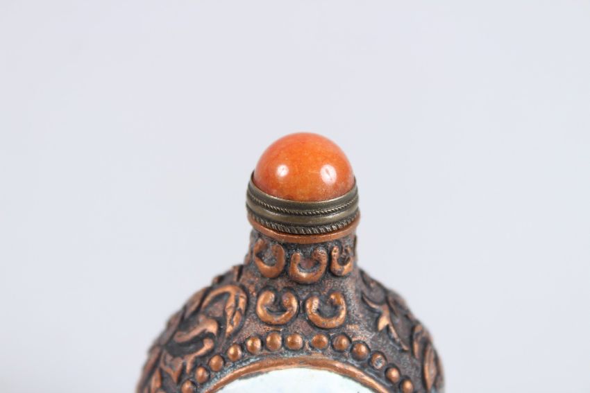 A CHINESE ENAMEL ON COPPER SNUFF BOTTLE.