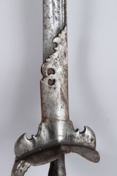 A VERY LARGE 17TH CENTURY INDIAN STEEL FIRANGI SWORD.