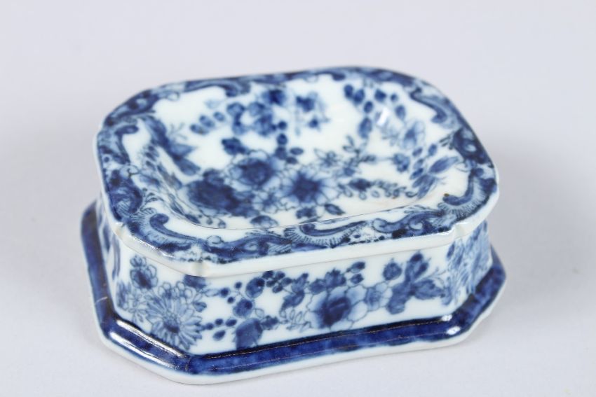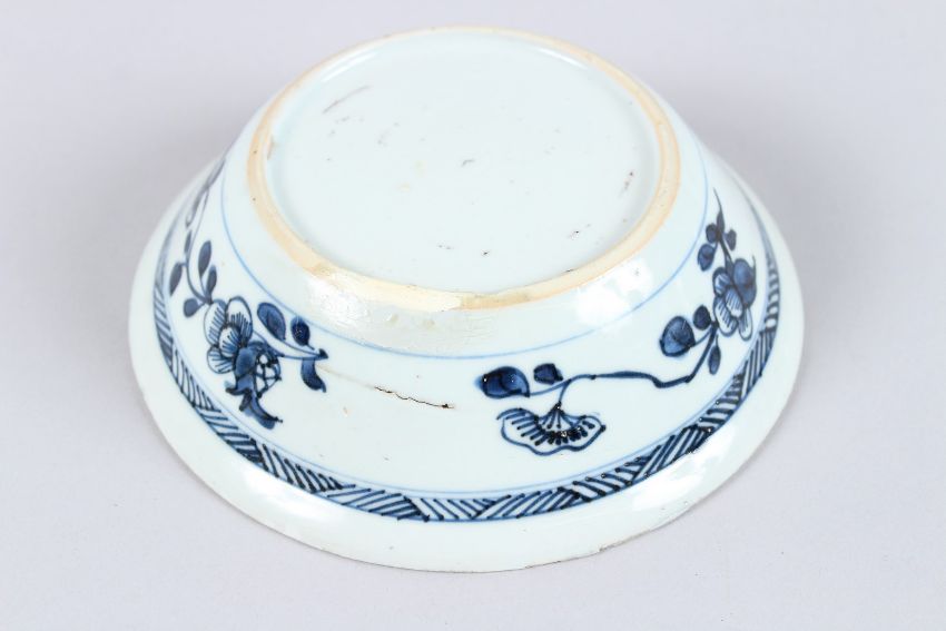 A CHINESE BLUE AND WHITE CIRCULAR BOWL, 6ins diameter, and a rectangular blue and white dish (2).