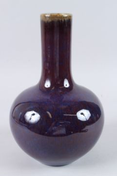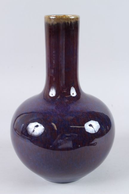 A LARGE CHINESE DEEP BLUE BULBOUS VASE.