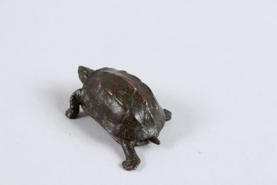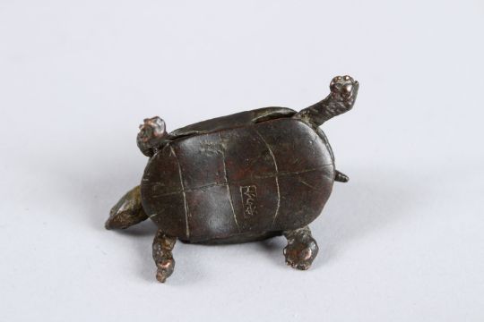 A JAPANESE OKIMONO BRONZE TORTOISE with articulated head.