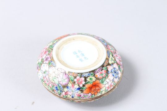 A CHINESE FAMILLE ROSE PORCELAIN BOX AND COVER.