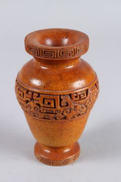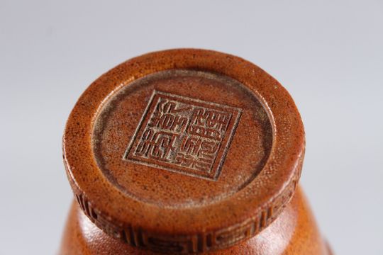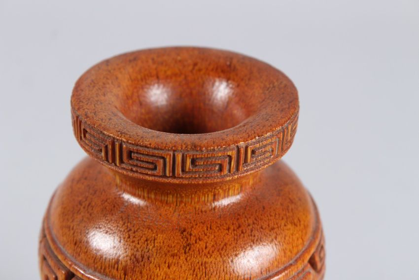 A CHINESE CARVED HORN VASE, the sides with a band of key pattern.