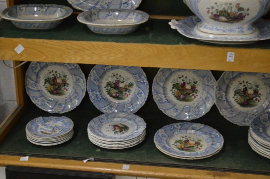 A large quantity of Wedgwood fruit basket dinnerware to include a large twin handled tureen, cover and stand and various dishes etc.