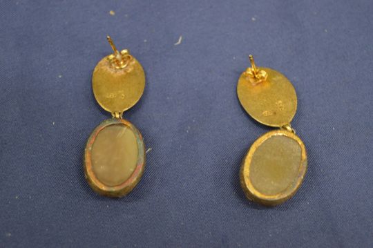 A pair of decorative earrings.