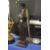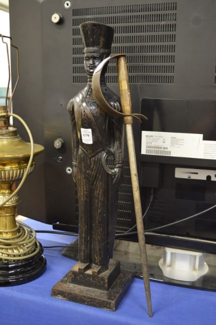 Cast iron military style poker stand and a brass oil lamp converted to electricity.