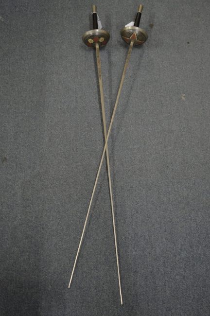 A pair of fencing foils.