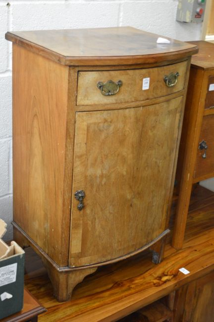 A walnut bedside cupboard.
