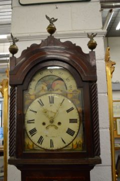A 19th century mahogany longcase clock, the painted arched dial with moon phase movement.
