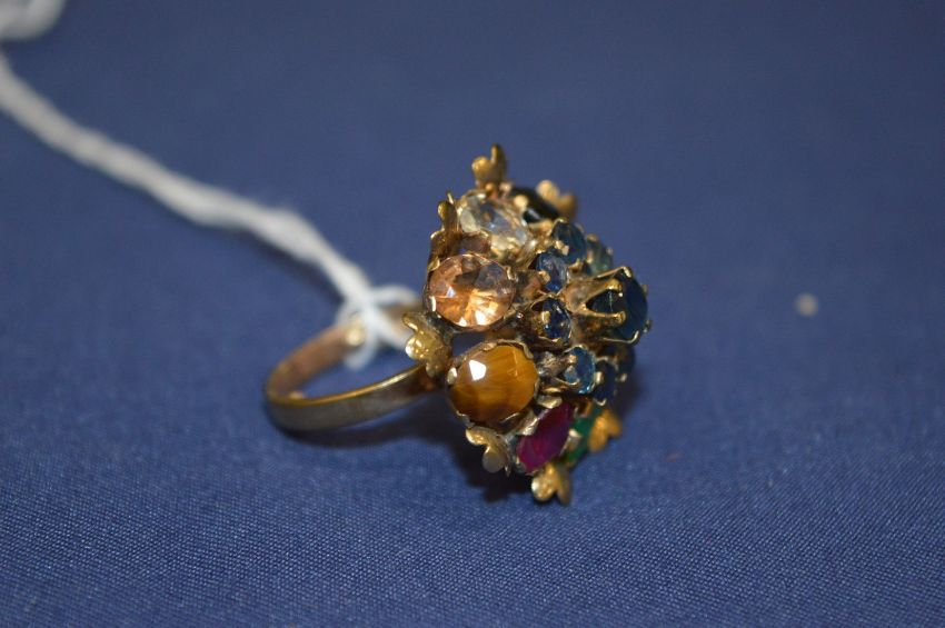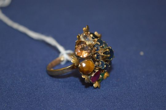 A 14ct gold multi colour gem set flower head ring.