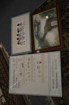A painting of a giraffe and two other items.