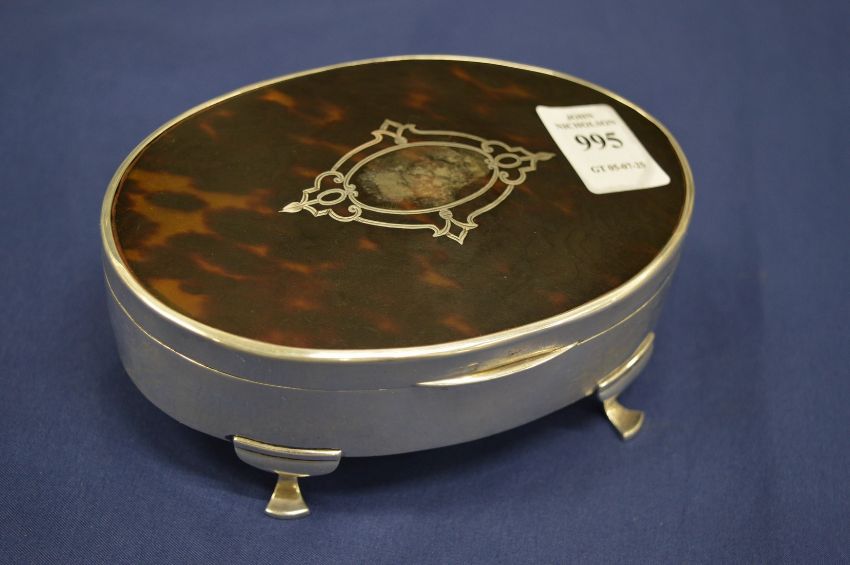 A good silver and tortoiseshell oval jewellery box, Birmingham 1943.