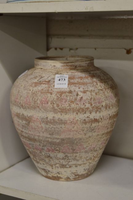 A painted pottery vase.