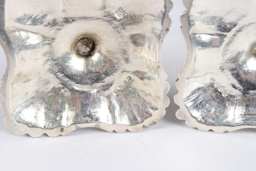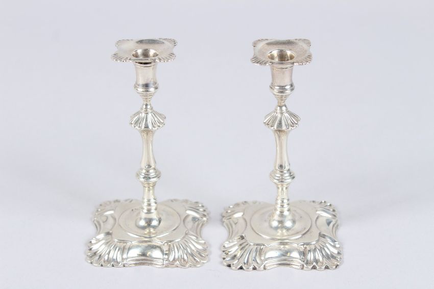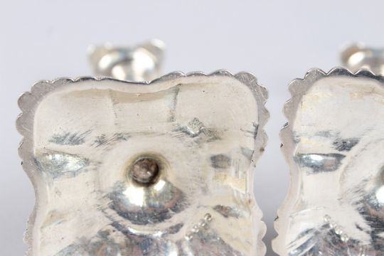 A PAIR OF CAST SILVER TAPER STICKS, of Georgian design, London 1937, makers John & Joseph Angel, 4.5in high.